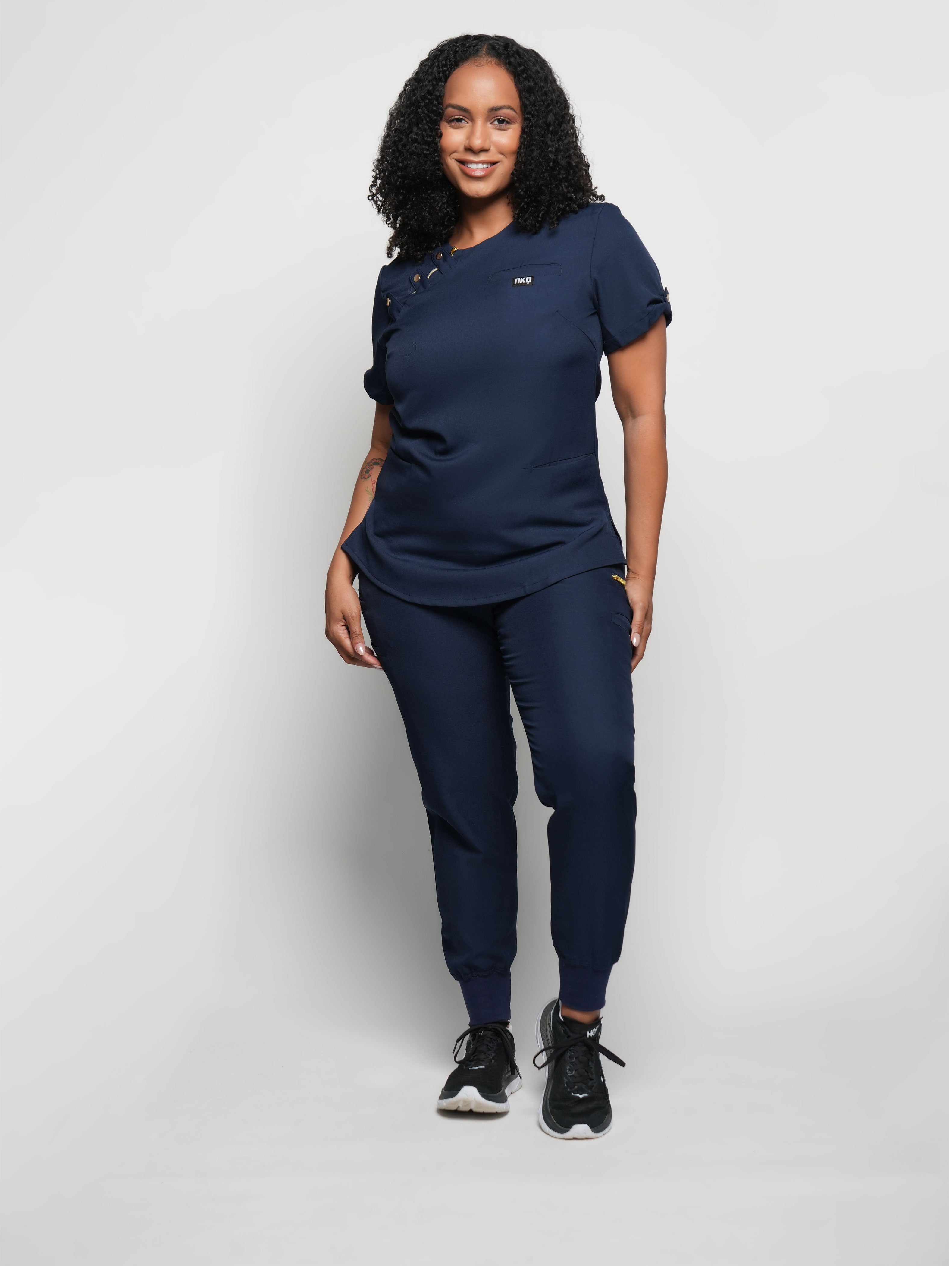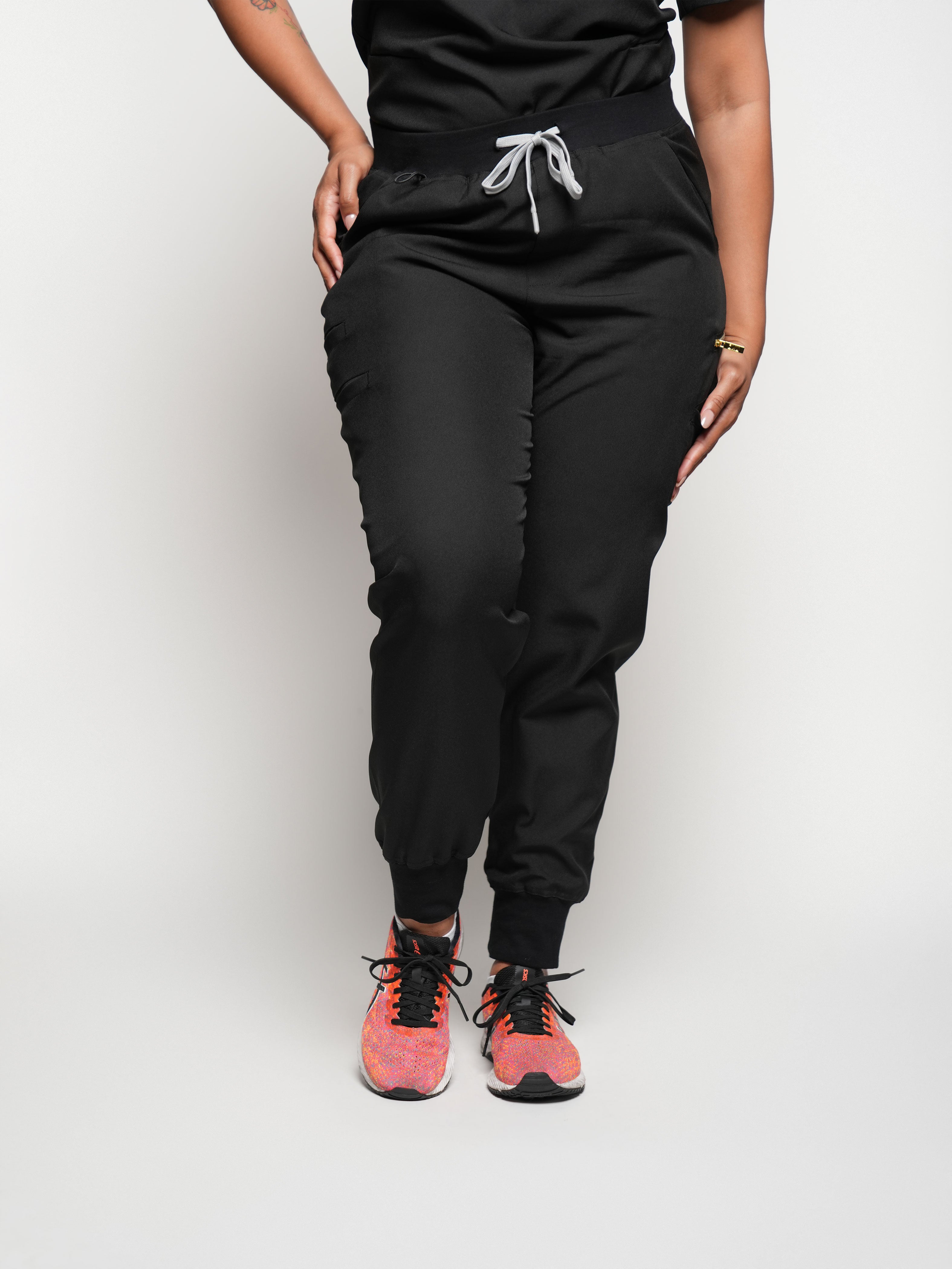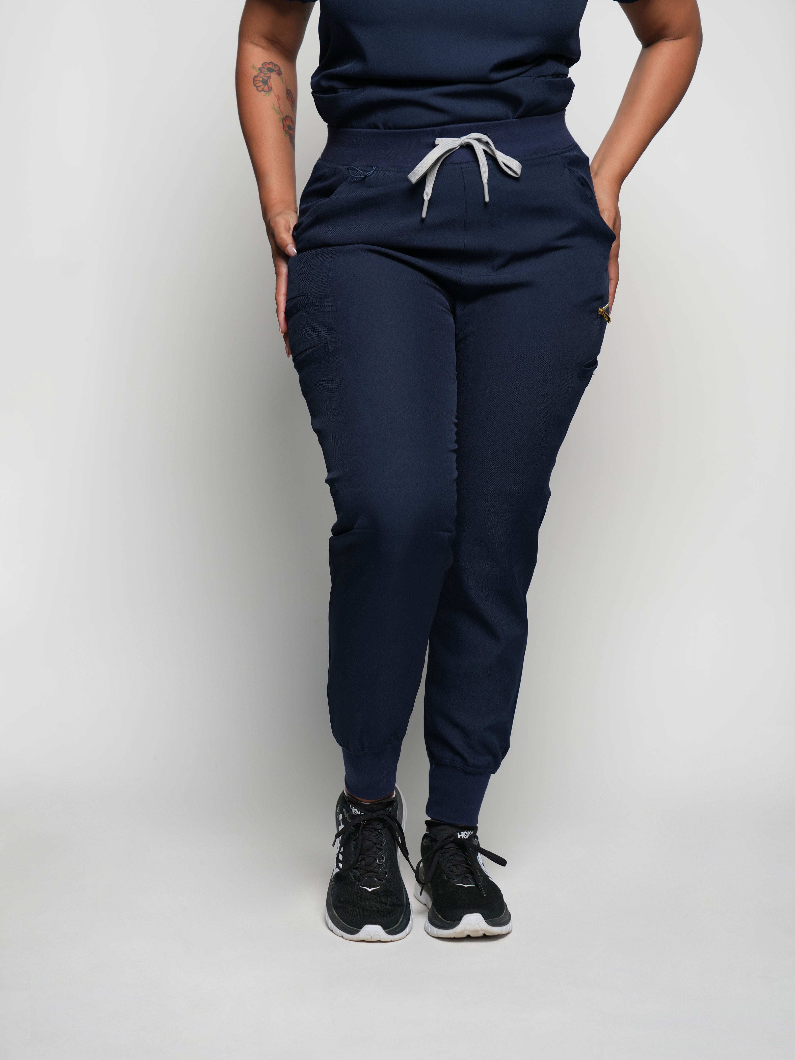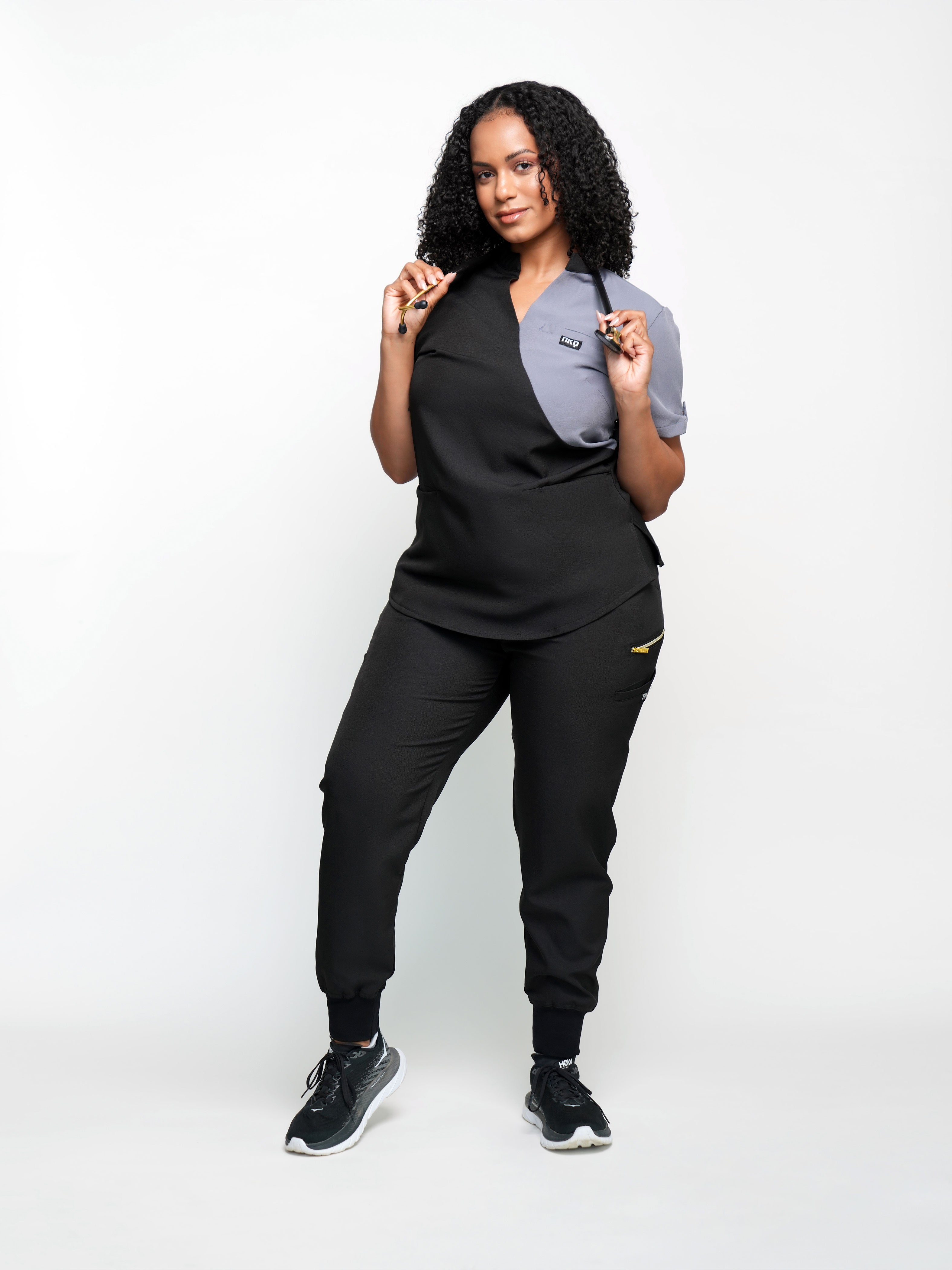 Our “Brooklyn” scrub jogger pants are the perfect blend of bold style and practical functionality, designed for healthcare professionals who want to stand out. These joggers feature a modern, athletic-inspired design with striking details that add a dynamic touch to your workwear. The stretchy fabric ensures a comfortable, flexible fit, allowing you to move freely and comfortably throughout your shift. Practical elements, such as multiple secure pockets and a durable, easy-care material, make these jogger pants as functional as they are stylish, ensuring you look and feel your best while on the job.