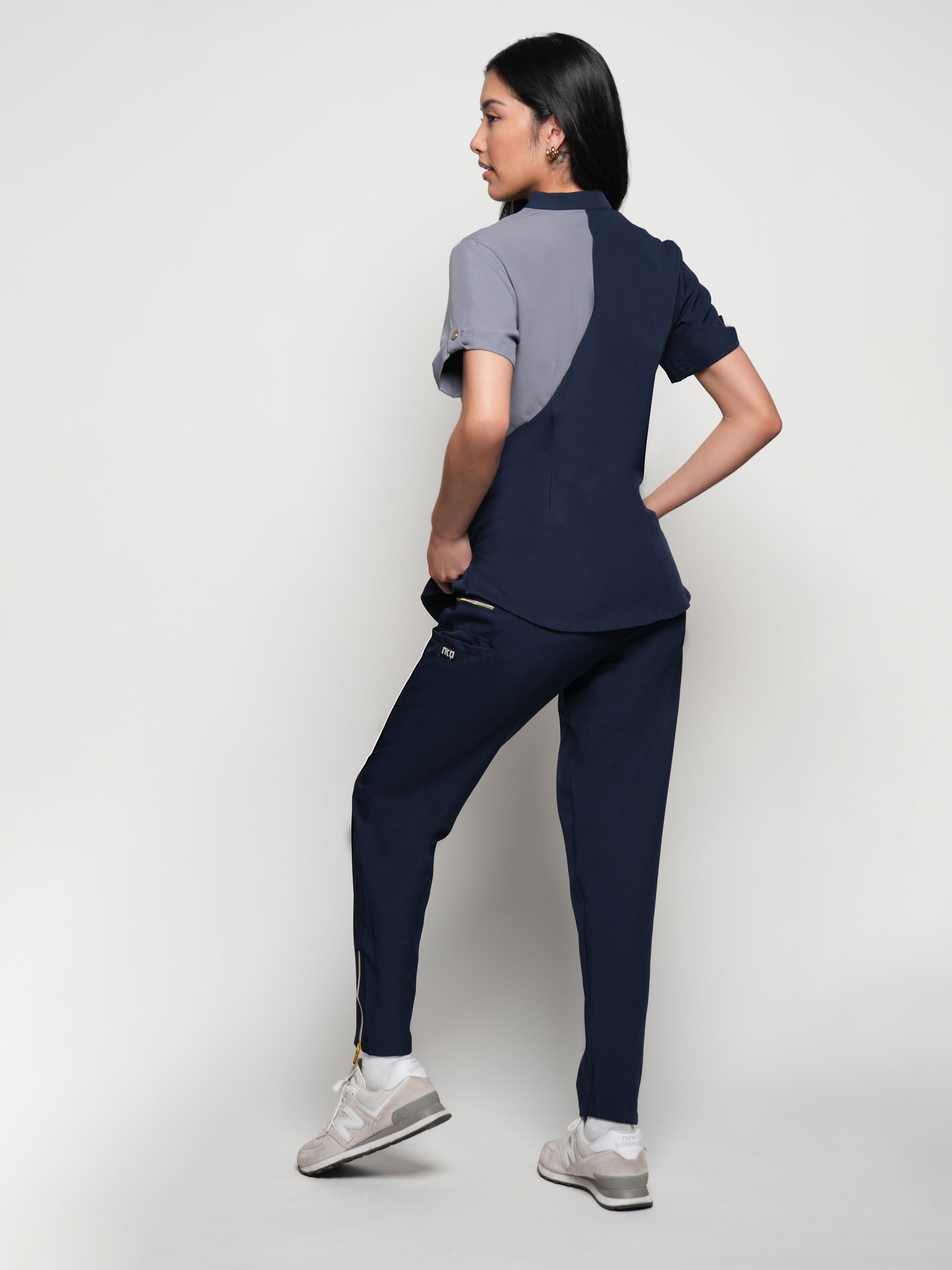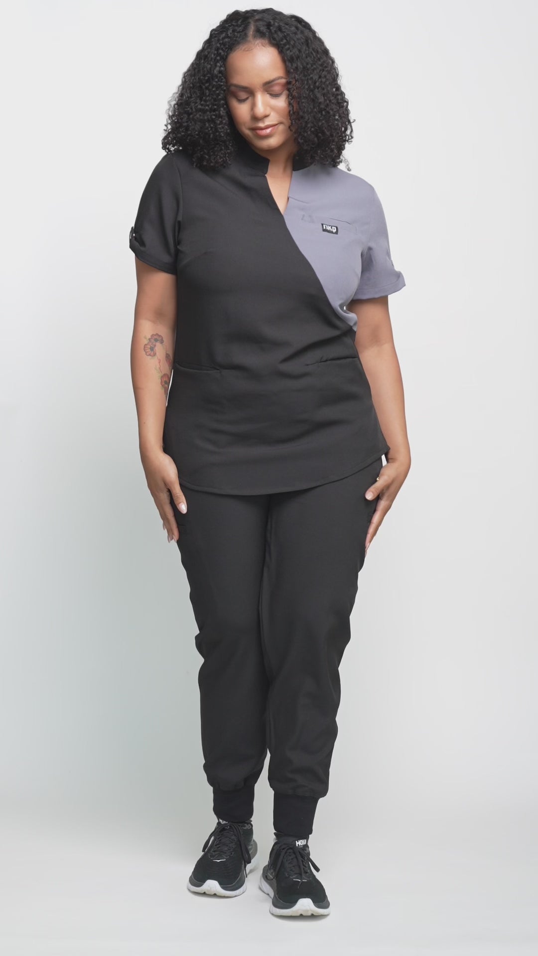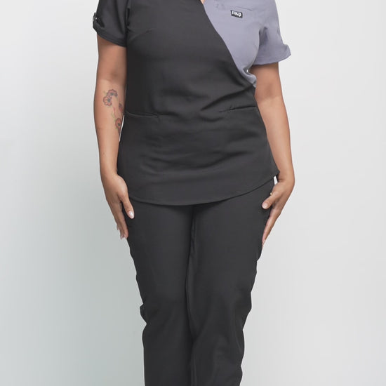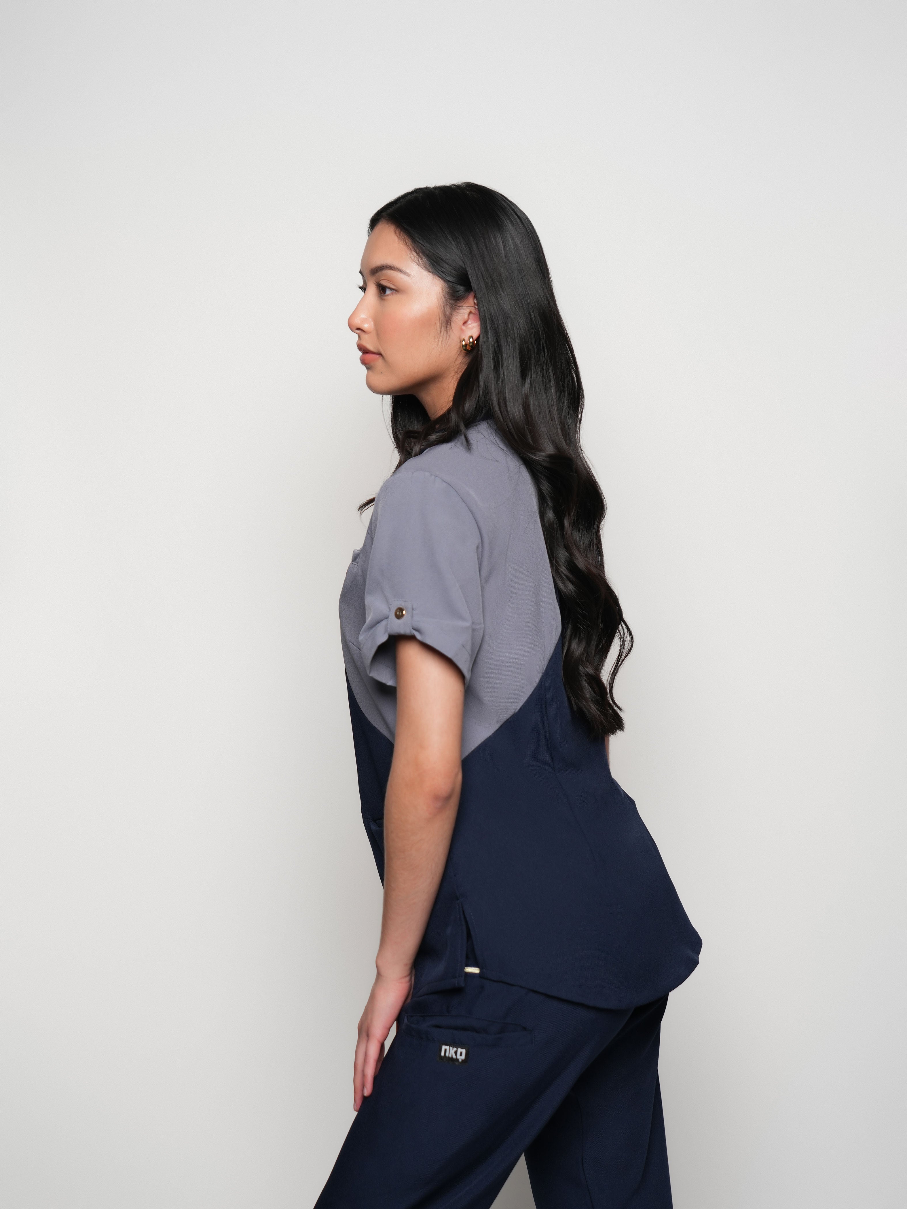 Our “Kingston” scrub top epitomizes modernity and boldness with its original two tone styling. Perfect for the contemporary healthcare professional who wants to make a dynamic impression. Featuring sleek lines and a cutting-edge design, this top stands out with its vibrant colors and innovative details. The fabric is not only stylish but also incredibly stretchy and comfortable, providing a perfect fit that adapts to your movements with ease. With this scrub top, you'll enjoy a modern, bold look without sacrificing the comfort and functionality needed for a demanding work environment.